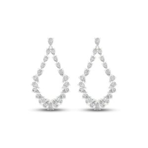These luxuriant earrings feature dazzling pear-shaped diamonds forming a dangling teardrop design. Fashioned in iconic 14K white gold, the earrings have a total diamond weight of 2 1/2 carats and secure with friction backs.